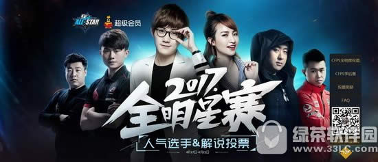 4月22日、23日,CFPL职业选手、赛事解说们将共度一堂,参演2017全明星表演赛,能够站在全明星舞台上的选手也代表着他们将拥有“实力”与“人气”的双重标签。而2017年的全明星,谁将由资格摘得“全明星”这一头衔,将由您决定!在4月17日10:00至4月21日24:00间,当日登陆《穿越火线》游戏并且角色等级≥10级的玩家都可以为您心中的”全明星“投票。与此同时,季后赛解说也同步开始选拔,在季后赛的赛场上,你最想看到哪一位解说呢?请准备好:更多精彩赛事即将呈现。