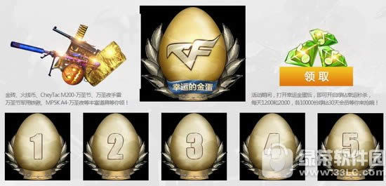 每日加入游戏一局,即可任意砸开1个金蛋,每个金蛋都会爆出不同品类的宝贝。累积砸开4个金蛋后,即可打开幸运的金蛋,获得超级宝贝。(每个金蛋只可开启1次)