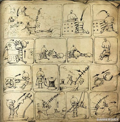 3 一个机器人需要的油在三个乐手左边的门里,出去有油滴下来,用壶接着一会即可!