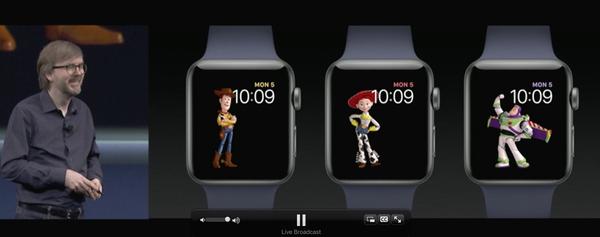 如果不想看到这些信息,可以使用万花筒画面,或连接手机来更换自己的照片作为手表界面。除了米妮之外,玩具总动员中的三个可爱的动画形象也加入到了表盘样式中,它们拥有灵动的动画效果。