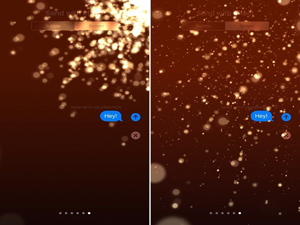 屏幕效果:今天苹果还为信息应用增加了一个新的“庆祝”全屏特效。