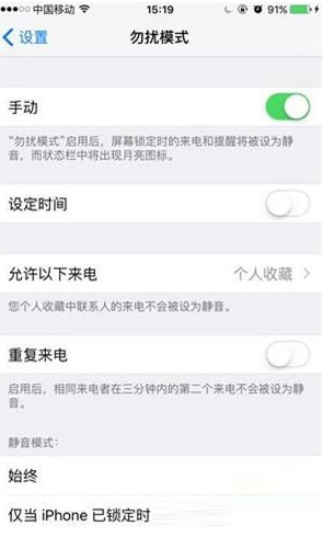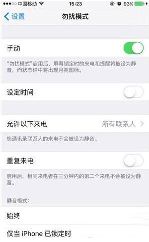 1.按顺序打开【设置】-【勿扰模式】-【手动】,开启该功能。