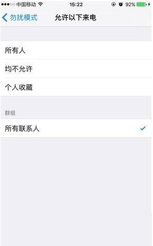 2.点击【允许以下来电】,为iPhone设置允许打进来的联系人。