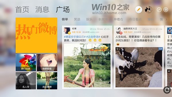 新浪微博Windows官方客户端,分享微博改变你的生活。专为Windows10/Windows 8.1用户打造的新浪微博客户端,实现了阅读、发布、评论、转发、关注、搜索等主要功能,支持本地相机即拍即传,并支持锁屏状态新消息提醒。今天Win10/Win8.1Win8.1版微博更新到2.3,优化微博浏览体验等。