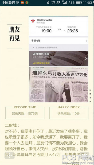 3.点击确定生成,生成后你的去迪拜当乞丐报纸和机票就生成啦