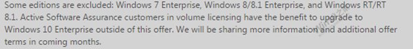 从以上信息来看,微软明确表示,Windows7、Windows8、Windows 8.1批量授权用户不享受本次免费升级Win10活动。微软将在最近的几个月中,提供更多的相关信息以及具体的升级条款。