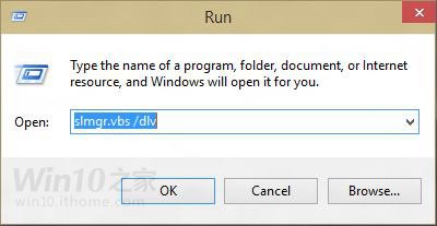 ▲使用“Win+R”快捷键打开“运行”窗口,输入"slmgr.vbs /dlv"。也可以在命令提示符窗口下,执行上述命令,之后按下“回车”键。