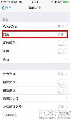 1、依次点开:【设置】-【通用】-【辅助功能】-【缩放】