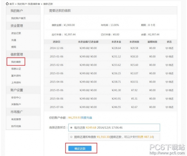 3. 借款成功后,准时还款,以于以后的借款额度、借款成功率有直接的影响。