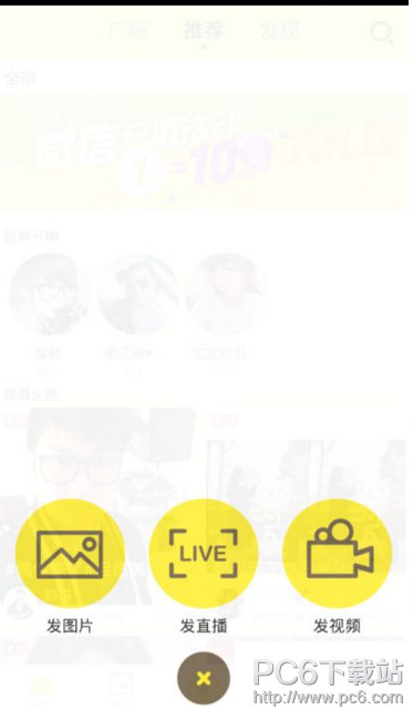 首先下载最新版本觅蜜直播,点击登录首页支持微信、微博、qq登录,进入首页可以看到广场、推荐和发现,就是可以浏览别人在觅蜜发的东西啦: