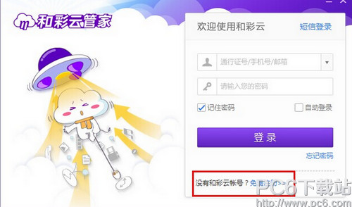 你可在和彩云管家界面点击“免费注册”,按照简单流程即可完成注册。您可以使用通行证号,以及与互联网通行证绑定的手机号码、邮箱地址登录互联网通行证或飞信、139邮箱、和彩云、和彩云通讯录、移动微博业务。