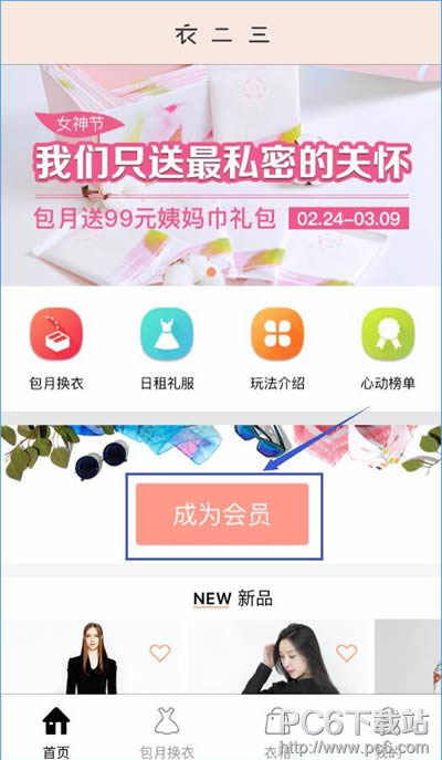 1、打开衣二三,点击成为会员即进入到登录页面;