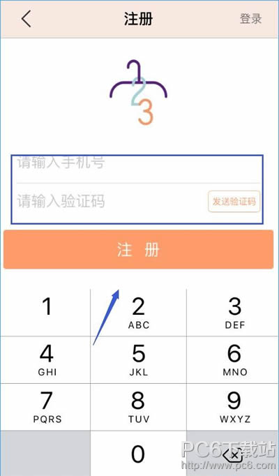 3、在注册界面中,输入手机号及手机验证码,然后点击注册即可快速注册成功。