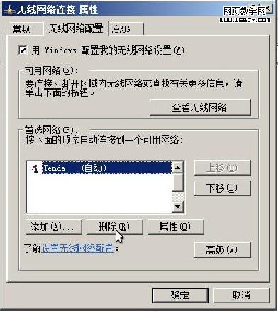 3.在无线网络连接属性中点击"无线网络配置",将"首选网络"中相应的无线配置文件删除即可.如图所示: