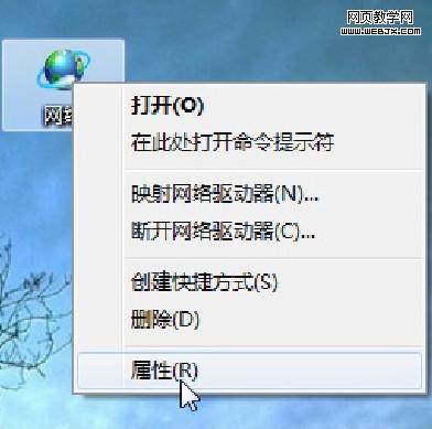 1.鼠标右键点击"网络"图标,再点击"属性",