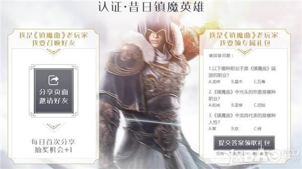 如果你已经是《镇魔曲》的老玩家,邀请好友体验游戏还有特别奖励,每日首次分享页面邀请好友,即可获得抽奖机会,另外,回答右侧的游戏问题,还能领取专属礼包,要注意的是,每个玩家只有一次答题机会,所以要认真思考哦!