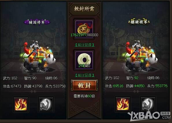 从辅国将军到骠骑将军 敕封所需军功80000,美玉10个,需要将领60级