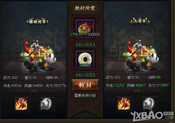 从校尉到中郎将 敕封所需军功400000,美玉50个,需要将领60级